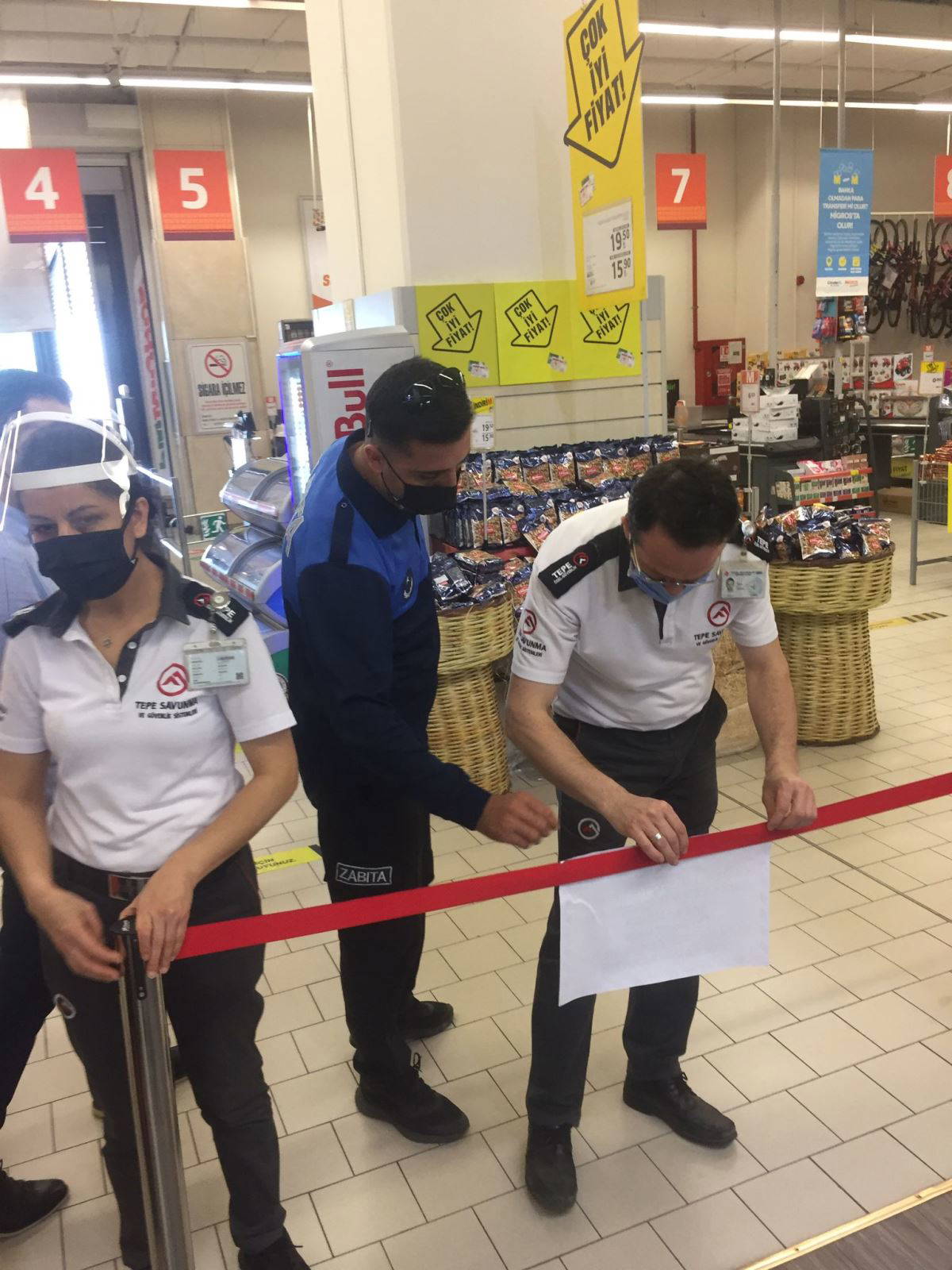 Görüntülerde, mağaza müdürünün kararla ilgili kendilerine bir tebligat gönderilmediğini söylemesi üzerine polis, "Yazılı tebligat yok ama haberlerde gerekli kurumlar durumu bildirdiler. Tebligat niteliği taşıyor. İtirazınız varsa sulh ceza mahkemesinde ceza tebligatı geldikten sonra başvurunuzu yapabilirsiniz" cevabı veriyor.