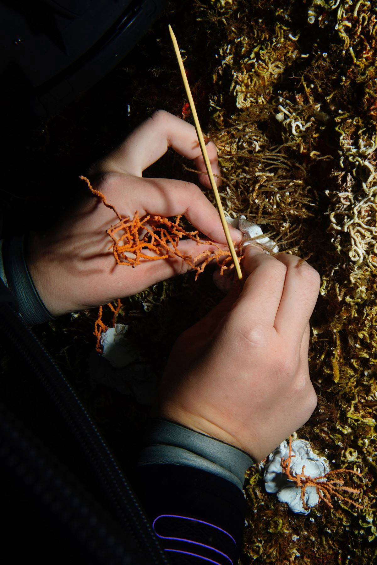 “Birinci aşama Sivriada’da 27 metrede bulunan mercanları her bir mercandan tek bir pay alıyoruz, yani tamamını alıp buraya getirmiyoruz. Bir ekim gibi bu çünkü esas türler orada duruyor. Onlardan parçalar alarak kavanoza koyarız, aşağıda Akdeniz suyuyla kavanozu mühürleriz. Sonra yukarı çıkarıp teknede bulunan buz dolu bir dolapta yani 15 derece sıcaklıkta tutabileceğimiz bir alana alarak 1.5 saatlik bir mesafeden Sivriada’dan buraya Neoandros Adası’na geliriz. İkinci dalışımıza hazırlanıp kavanozla beraber onları yeni yuvalarına 25 metredeki Akdeniz’e tekrar indirip mührü orada açarız. Bu aslında bir yarışma. Organ nakli gibi her gün Sivriada’ya git, onları al, buraya gel, tekrar in ve ek. Tek tek ekilen bir şey. Her bir dalışınızın süresi var. Bir günde yapabileceğiniz dalışın bir adeti var, günde 2 dalış yapabiliyoruz, maksimum 20-22 dakika aşağıda kalma şansımız var. bu oldukça meşakkatli ve zor bir iş. Sonrasında onların takibi ve sürekliliği olması lazım. Aslında bir kasa yaratıyoruz biz burada, gelecek Akdeniz ve Marmara türlerinin tamamı için burada bir kasa yaratıyoruz. Nuh’un gemisi, bir biyo çeşitlilik havuzu hazırlıyoruz. Yaptığımız şeyin ne kadar önemli olduğunun biz farkındayız, bakanlıklarımız da destek veriyor ama bir kitleye yayabilirsek o zaman burada bir etki yaratabiliriz. bu etkiyle koruma alanlarını yaratabilirsek de bizim belki 10-20 yıl sonra anahtar türleri barındırdığımız bir kasamız olacak. Aynı ata tohumları gibi.”