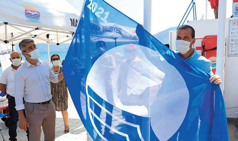 Marmaris’teki mavi bayraklı plaj sayısının bu sene 21’den 26’ya çıktığını söyleyen Marmaris Belediye Başkanı Mehmet Oktay, halk plajında TÜRÇEV yetkilileri ile birlikte mavi bayrağı göndere çekti. Başkan Oktay, “Pandemi dolayısıyla kriterler biraz daha farklılaştı. Bu konuda geçtiğimiz sezondan tecrübeliyiz. Geçen yıl zaten pandemi kurallarına uygun hazırlıklar yapmıştık. Bu sezon da aynı çalışmaları daha da detaylandırarak gerçekleştirdik. Tüm tedbirleri aldık. Yurtdışı ya da yurtiçindeki misafirlerimiz gönül rahatlığıyla Marmaris’i tercih edebilir” diye konuştu.