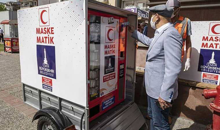 Büyükşehir Belediyesi, koronavirüs salgınının ilk gününden itibaren maskeye ulaşma konusunda yaşanan sıkıntıları Meslek Fabrikası bünyesinde yaptığı maske üretimi ve hayata geçirdiği maskematik formülüyle aştı. İzmir’in merkezinde yaşayan yurttaşların tıbbi maskeye erişimini kolaylaştırmak için 17 metro istasyonu ve Karşıyaka, Bostanlı, Konak vapur iskelelerine maskematik yerleştirildi.