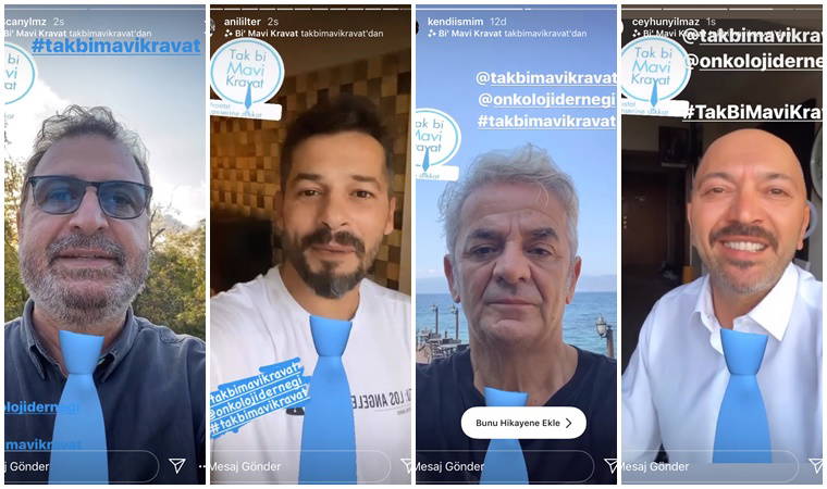 Kampanya için tasarlanan mavi kravat şeklindeki Instagram filtresi ile yapılan paylaşımlar oldukça ses getirdi. Radyocu Kadir Çöpdemir, senarist Can Yılmaz, oyuncu Zafer Algöz, radyocu Ceyhun Yılmaz ve oyuncu Anıl İlter gibi tanınmış isimler yaptıkları paylaşımlarla kampanyaya destek verdi. Zafer Algöz ve Can Yılmaz, ayrıca “Burda Olan Burda Kalır” isimli Youtube kanallarındaki videoda da konuya yer vererek kampanya mesajlarını yinelediler.