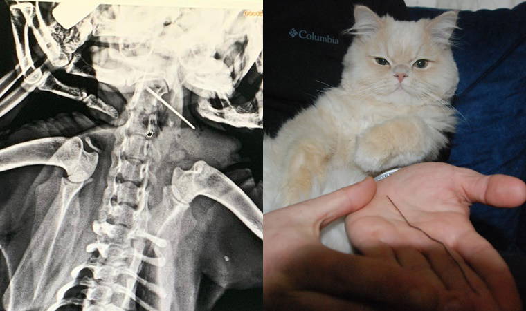 Kedisinin hareketlerinin yavaşlamaması ve yemek yememesinden şüphelenerek, veteriner kliğine götürdüğü belirten Serkan Yılmaz, "Veteriner hekim Olcay Ortakçı, yapılan muayede kedinin ağzında kireçlenmeden dolayı enfeksiyon oluştuğunu söyledi. Sonra emin olmak için kedinin röntgeni çekildi. Sonra boğazına dikiş iğnesi olduğunu tespit etti. Yarım saatlik operasyonunun ardından iğne bulunduğu yerden çıkartıldı. Şu anda ilaçlarını kullanıyor. Sağlığı gayet yerinde eski haline döndü" dedi.