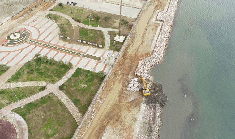 Ön kısımda yeniden imal edilen kaya tahkimat dalga etkisinden alanı koruyacak. Yapılan kaya tahkimatı deniz seviyesinden yaklaşık 1,5 metre yüksekte olacak. Ayrıca yerleşim bölgelerindeki yağmur suyunu toplamak üzere bin 750 metre uzunluğunda yağmur suyu hattının 540 metresi tamamlandı. Toplanan sular mevcut terfi merkezindeki pompalar aracılığıyla denize verilecek. Proje kapsamında yurttaşların denizle bağını güçlendirmek için 55 metre uzunluğunda deniz merdiveni ve çocukların kuşları tanıyacakları su içi sınıfı olacak. Bu alan sanatsal etkinlikler için de kullanılacak. Çalışmalar 38,4 milyon liraya mal olacak.