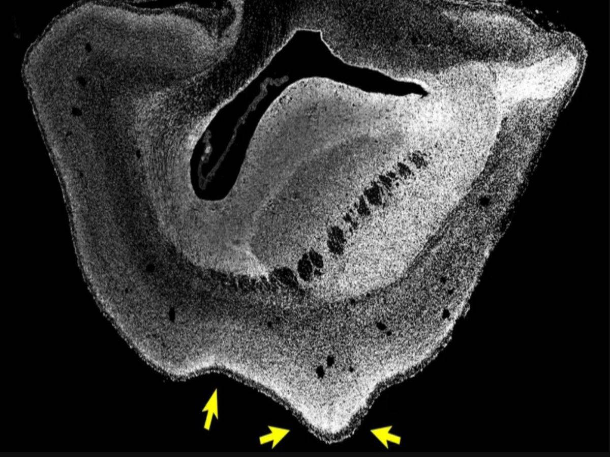 Oklar, insan geni verilmiş 101 günlük marmoset beynindeki katlanmaları gösterir / Science