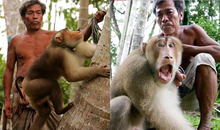 Burada turistler 10 dolar (yaklaşık 83 lira) çocukları da 5 dolara (yaklaşık 42 liraya) maymunların nasıl hindistancevizi toplamayı öğrendiklerini izleyebiliyor.