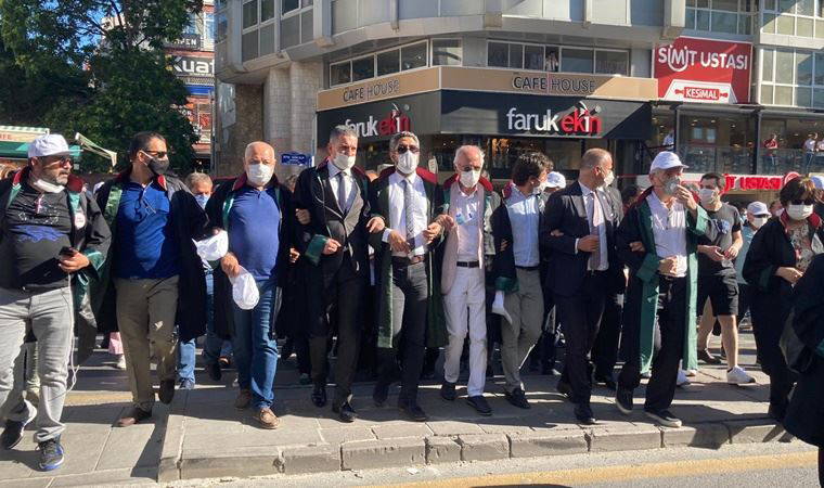 Alana alınmayan avukatlar daha sonra "Savunma susmadı, susmayacak" sloganlarıyla Tunali Hilmi Caddesi'nde yürüyüş gerçekleştirdi. (ANKA)