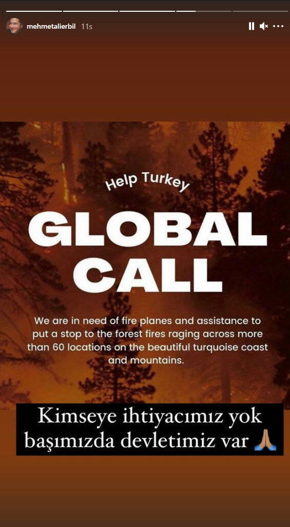 Şovmen Mehmet Ali Erbil ise Instagram hesabından 'Help Turkey' paylaşımlarına tepki gösterdi.