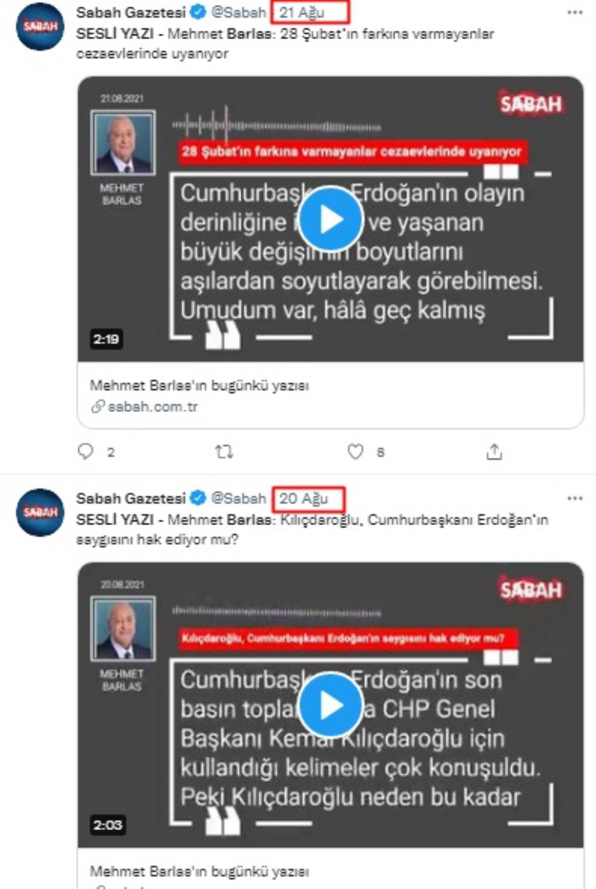 İktidar medyasının amiral gemisi Sabah'ın "kıdemli" yazarlarından Mehmet Barlas ise konuya dair peş peşe şaşırtıcı iki köşe yazısı kaleme aldı.