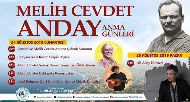 Bu yıl 14.’sü Ören mahallesinde düzenlenecek Melih Cevdet Anday Anma günleri kapsamında 24 Ağustos Cumartesi günü ödül töreni sonrası Ataol Behramoğlu-Haluk Çetin ikilisi şiir ve müzik dinletisi ile sahne alacak. Etkinliğin ikinci günü olan 25 Ağustos Pazar akşamı saat 21:10’de Anadolu Rock müziğinin başarılı ismi Ali Altay konseri düzenlenecek.
