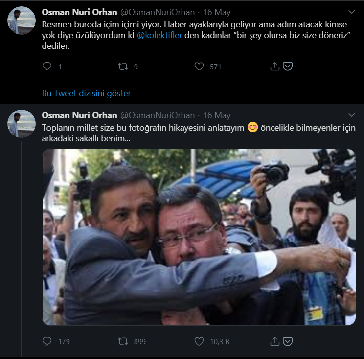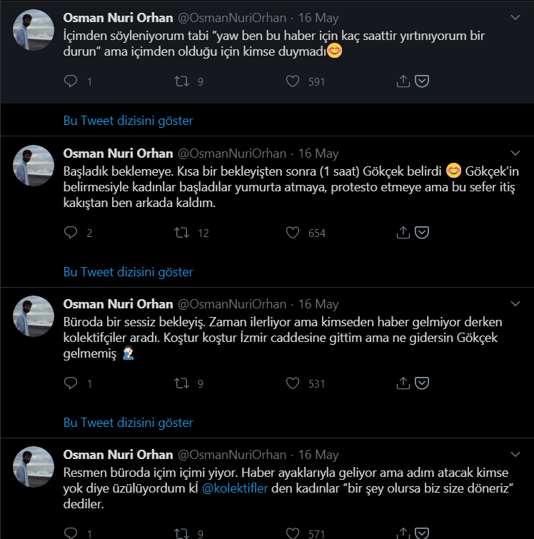 Resmen büroda içim içimi yiyor. Haber ayaklarıyla geliyor ama adım atacak kimse yok diye üzülüyordum kİ @kolektifler den kadınlar ‘bir şey olursa biz size döneriz’ dediler.