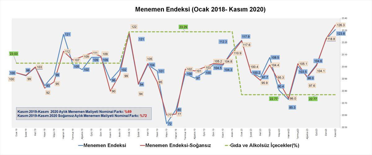 Prof. Dr. Veysel Ulusoy ile Dr. Caner Özdurak önceki analizlerinde ağustos, eylül ve ekim endekslerinin verilerine göre yılın son çeyreğinde hem Merkez Bankası'nın son enflasyon raporundaki beklentisi ile tezat bir şekilde covid-19 salgınında ikinci dalganın yaşanması hem de eriyen rezervler nedeniyle ekonominin kur ataklarına açık olması sebebiyle ekonomide yaşanabilecek maliyet enflasyonunun altını çizmişti. Bununla paralel olarak eski Türkiye Cumhuriyet Merkez Bankası Başkanı Murat Uysal yılın son enflasyon raporu sunumunda 2020 ve 2021 enflasyon beklentilerinin yukarı yönlü yenilendiğini açıklamıştı ve daha önce yüzde 8.9 olarak açıklanan 2020 yıl sonu enflasyon beklentisi yüzde 12..1'e çektiklerini belirtmişti. Sonrasında gerçekleşen ekonomi yönetimi değişimi ve Merkez Bankasının faiz kararı ise kısa vadede kurun geri çekilmesini sağlasa da kasım ayı enflasyonunun yüksek çıkması ve 475 baz puan artışın kalıcı bir stabilizasyon yaratmaması tekrar bir faiz kararı beklentisi doğurdu.