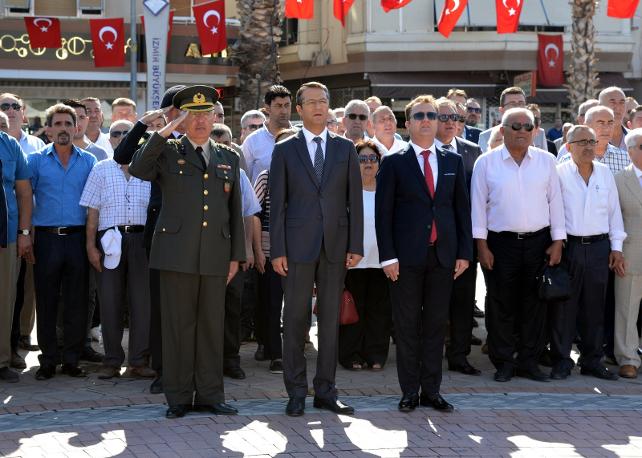 Sabah saatlerinde Menemen Cumhuriyet Meydanı’nda düzenlenen törende Atatürk Anıtı’na çelenk sunulurken, Ulu Önder Gazi Mustafa Kemal Atatürk ve mücadele arkadaşları, bir kez daha sonsuz saygı ve minnetle anıldı. Alanı dolduran her yaştan Menemenli, 9 Eylül Kurtuluş Günü nedeniyle Atamıza ve silah arkadaşlarına saygı ve sevgilerini gösterdiler.