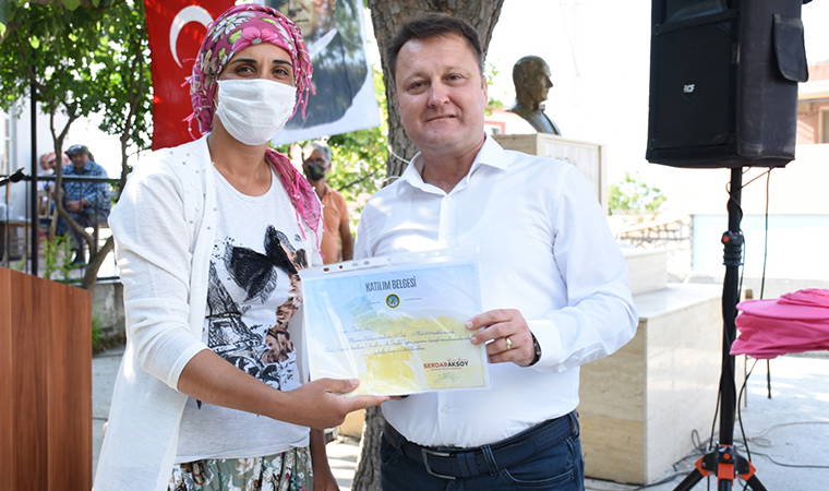 Menemen Belediyesi Tarımsal Hizmetler Müdürü Üzeyir Karaca tarafından verilen eğitimlerde başarılı olan 61 kursiyerin sertifikalarını aldığı törene, Menemen Belediye Başkanı Serdar Aksoy, Tarımsal Hizmetler Müdürü Üzeyir Karaca, Başkan Yardımcısı Mehmet Cin, Belediye Meclis Üyeleri, muhtarlar, kursiyerler ve vatandaşlar katıldı.