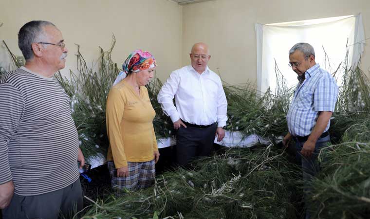 Bayır Mahallesindeki “İpek Evleri” nde üretici aileleri ziyaret eden ve üretim hakkında bilgiler alan Başkan Gümüş, geçmişte en büyük gelir kaynağı olan ama zamanla unutulan ipekböcekçiliği yetiştiriciliğini gelecek kuşaklara aktaracaklarını belirterek, “Bir zamanlar bölgenin en önemli gelir kaynağı olan ipekböcekçiliği yetiştiriciliği zamanla unutuldu. Şimdi Yerel Tohum Derneğimizle hayata geçirdiğimiz proje ile ipekböcekçiliği yetiştiriciliğini yeni kuşaklara aktarmak, ailelerimize ekonomik bir gelir sağlamak ve kadın üreticilerimize destek olmak istiyoruz. Üreticilerimizin hevesli olması bizi çok mutlu etti. Nisan Ayı’nın son haftasında Koza Birlikten 40 bin böcek alan üreticimiz hasat almaya başladı. Kozalar oluşuyor. Buradan elde edilecek kozalar yine alım garantili Koza Birliğe verilecek. Aileler bu şekilde bir gelir, bir kazanç elde etmiş olacak. Bir aile 100 metrekarelik bir alandaki ipekböcekçiliği yetiştiriciliği ile yaklaşık 6 - 7 Bin Türk Lirası bir kazanç elde ediyor olacak. Menteşe Belediyesi olarak İpekböcekçiliği yetiştirebilmesi için desteğimiz devam edecek. Daha fazla ailenin ipekböcekçiliğinden gelir sağlamasını hedefliyoruz.” şeklinde belirtti.