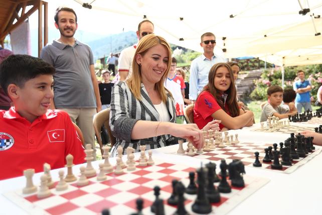 Merkezefendi Belediye Başkanı Şeniz Doğan, hem gelecek vadeden oyuncu Batuhan Özen hem de Türkiye Satranç Federasyonu Denizli İl Temsilcisi Ayşegül Akdeniz ile satranç oynadı. Katılım sağlayan sporseverlere başarılar dileyen Başkan Doğan, “Satranç kültürünü ülkemizin tamamına yaymayı ve sevdirmeyi hedefleyen bu projeyi Ornaz Vadimizde düzenlemekten dolayı büyük mutluluk duyuyoruz. Hemşerilerimiz her zaman olduğu gibi yine yoğun bir katılım sağladı. Çocuklarımız ve aileleri Ornaz Vadimizin serinliğinde ve güzelliğinde satranç oynayacaklar. Aramızda dört milli oyuncumuz bulunuyor. Kendilerine başarılar diliyorum. Merkezefendi sporun her türlüsünü seven, önemseyen bir ilçe. Biz de Merkezefendi Belediyesi olarak her zaman sporun ve sporcunun yanındayız. Spor kapsamında projelerimizi gerçekleştirmeye de devam edeceğiz” dedi.
