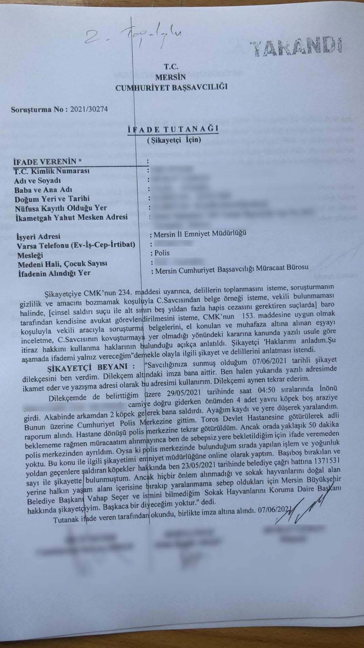 Mersin'de, 'Zaytung' haberlerini aratmayan bir olay yaşandı. İlde bir polis memuru, 2 köpeğin havladığı ve kendisini 'ürküttüğü' gerekçesiyle, Mersin Büyükşehir Belediye Başkanı Vahap Seçer'den şikayetçi oldu.