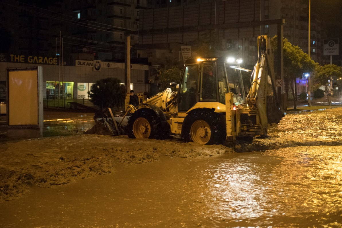 Şiddetli yağış nedeniyle teyakkuza geçen ve kiriz masası oluşturan Mersin Büyükşehir Belediyesi, bütün ekipleri ile gece boyu sahada görev yaptı. Özellikle merkez ilçe Mezitli’de saat 01.00 sıralarında şiddetini arttırarak yağan yağmur nedeniyle bazı bölgelerde su taşkınları oluştu. Ekipler, eski Mezitli Yolu, Kandak Deresi, Gazi Mustafa Kemal Bulvarı ve Akkent Mahallesi'nde çalışmalarını yoğunlaştırdı. Büyükşehir Belediyesi ve MESKİ ekiplerinin koordineli şekilde yürüttüğü çalışmalarda, vatandaştan gelen tüm ihbarlar değerlendirildi.