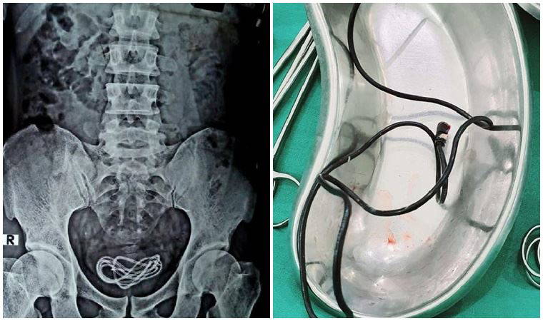 Hindistan medyası, karın ağrısı şikayetiyle hastaneye giden kişinin doktorlara, “Şarj kablosunu yuttum” dediğini duyurdu. Doktorlar ameliyat sırasında şarj kablosunun, kişinin cinsel organından mesanesine girdiğini tespit etti. Ameliyatı gerçekleştiren Dr. Walliul Islam, “Yaklaşık 25 yıldır cerrahım ancak şu ana kadar bir ameliyatta ilk kez böyle bir durumla karşılaştım” dedi.