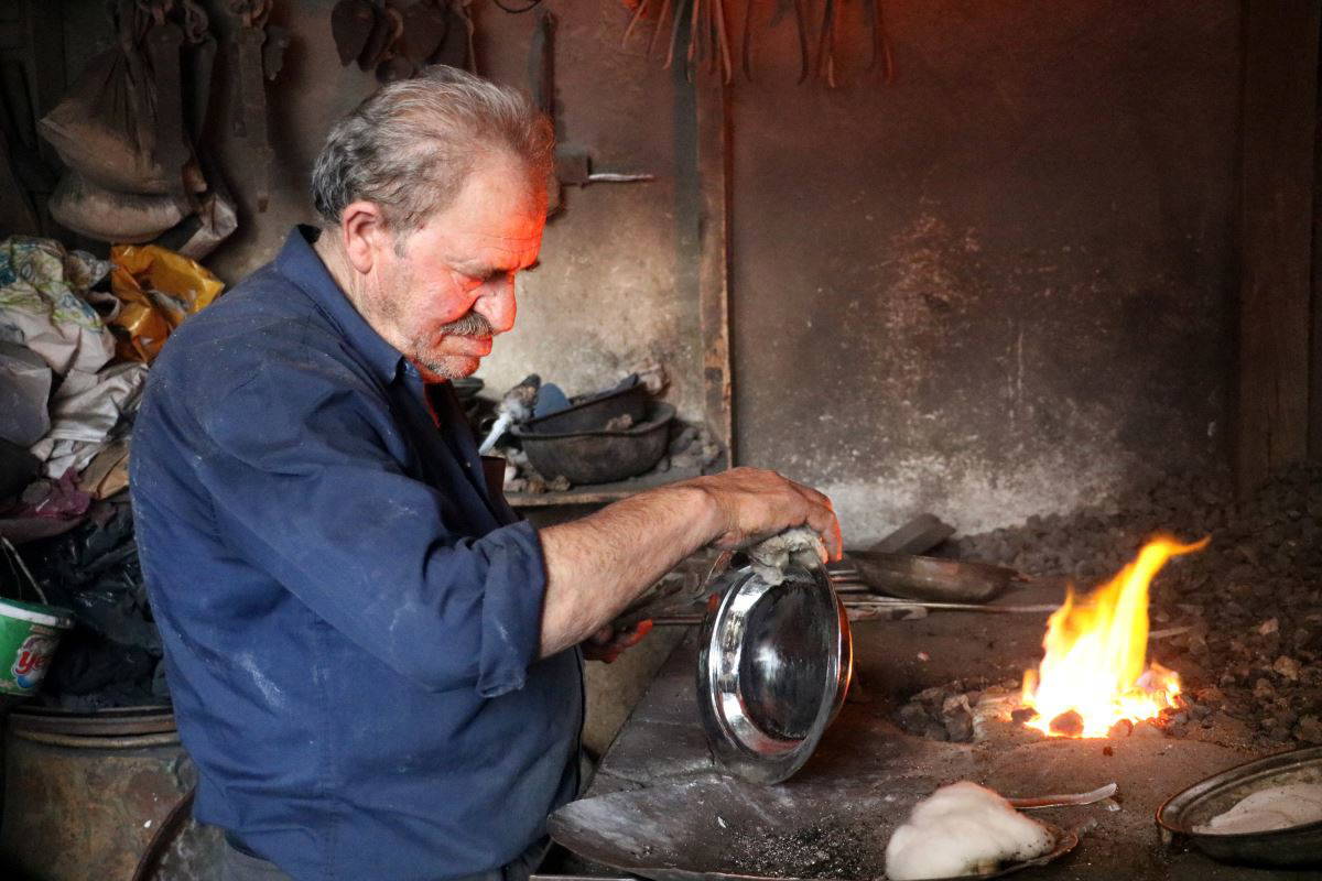 ''Bu mesleği yapan 3 kişi kaldık. Eskiden burada 150 tane kalaycı dükkanı varmış anlatılanlara göre, şimdi herkes bıraktı 3 tane adam kaldı burada. Arkadaşım orada siliyor düzeltiyor, ben bu ocakta kalaylıyorum. Ondan sonra müşteriye veriyorum.''