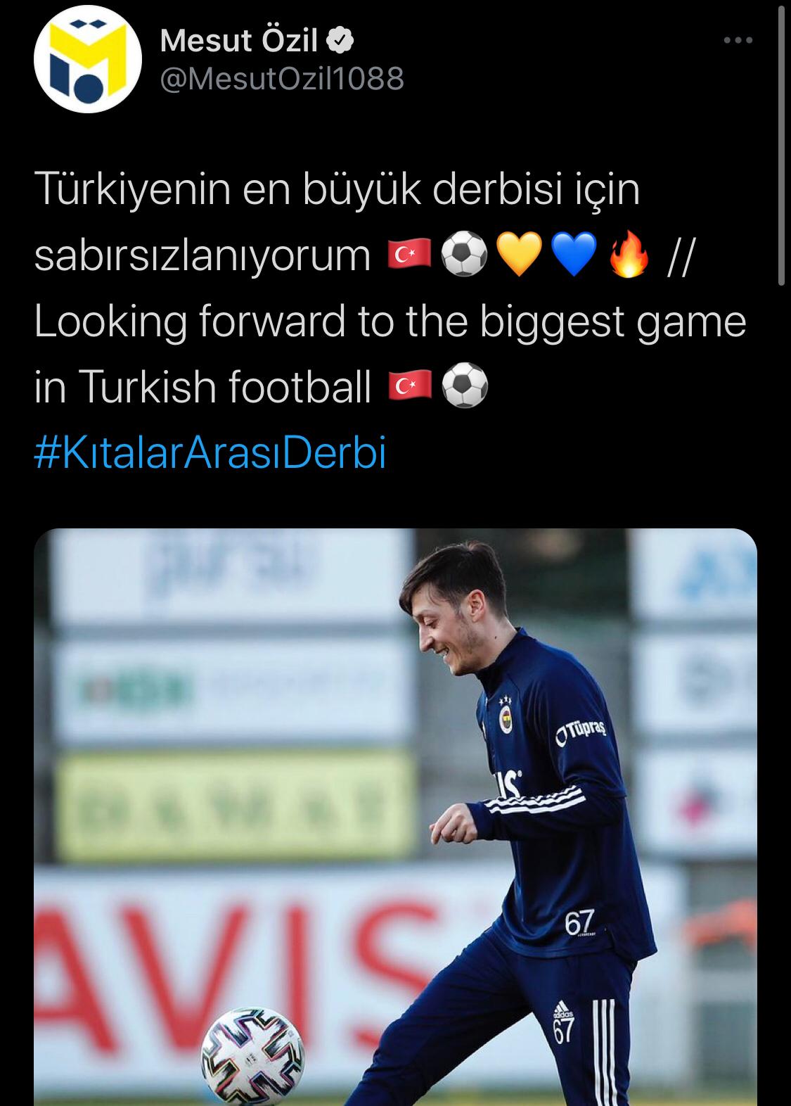 Fenerbahçe'nin yeni transferi Mesut Özil, derbiye yönelik paylaşımda bulundu.