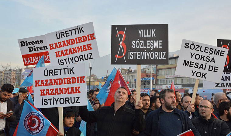 Toplu iş sözleşmesi müzakereleri işçileri temsil eden Türk Metal, Birleşik Metal-İş ve Özçelik-İş sendikaları ile Türkiye Metal Sanayicileri Sendikası (MESS) arasında yürütülüyor. Dün, Borsa İstanbul’da işlem gören Arçelik, Karsan, Tofaş, İzmir Demir Çelik, Çelik Halat gibi şirketlerden Kamuyu Aydınlatma Platformu’na (KAP) yapılan açıklamaya göre grev tarihi henüz belirlenmedi ve görüşmeler sürüyor. Yine dün açıklama yapan Türk Metal, işveren sendikası MESS’in tıkanan görüşmeler kapsamında kendilerinden yeni bir görüşme talebinde bulunduğunu duyurdu. Açıklamada, “Buna göre taraflar, 20 Ocak 2020 Pazartesi günü saat 09.30’da İstanbul MESS Merkez Ofisi’nde tekrar bir araya gelecekler” denildi.