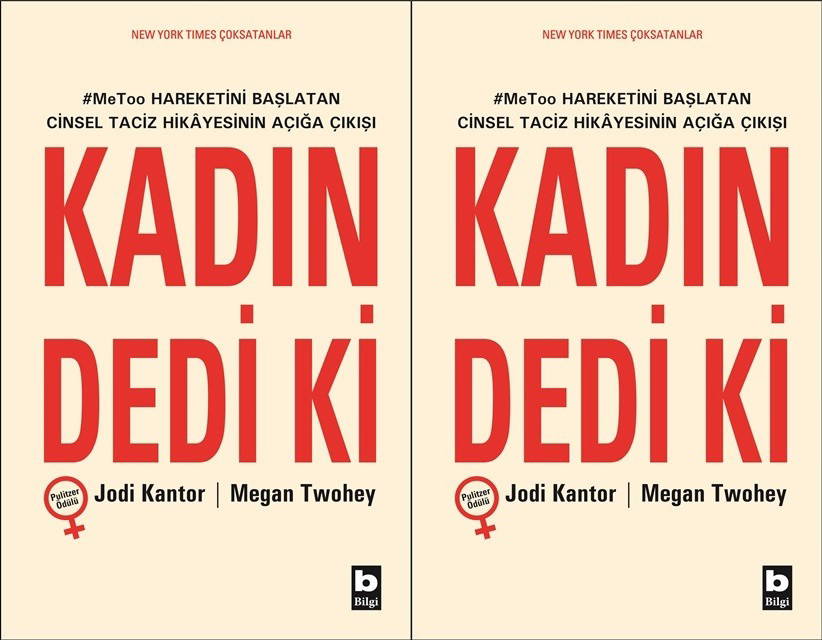 Jodi Kantor ve Megan Twohey, ülkemizde Sevim İrem Alkılınç’ın çevirisiyle, Bilgi Yayınevi tarafından yayımlanan ve araştırmacı gazeteciliğin en onurlu örneklerinden birine imza attıkları ‘Kadın Dedi ki - #MeToo Akımını Başlatan Cinsel Taciz Hikâyesinin Açığa Çıkışı’nda; bu konuda, nasıl, ne zaman ve neden gibi ince ayrıntılarla açıkça konuşan kadınları, konuşmamayı seçen diğer kadınlarla birlikte anlatıyorlar.