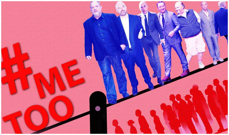 Sarsılmaz derecede güçlü görünen erkeklerin profesyonel yaşamlarından bir anda koparıldığı örnekler görülüyordu: Televizyon sunucuları Charlie Rose’la Matt Lauer, ünlü şef Mario Batali. Patronların cinsel ilişki teklifinde bulunması, şirketlerde taciz ve istismarı gizli tutan uzlaşma politikaları gibi ve hatta okul koridorlarında sutyen kopçası çekme şakalarıyla filmlerde erkek kahramanların kadınlardan faydalandığı sahnelere gülmek gibi küçük davranışlar dahil olmak üzere, önceden tolere edilen uygulamaların yanlış olduğuna ilişkin fikir birlikleri artıyordu.