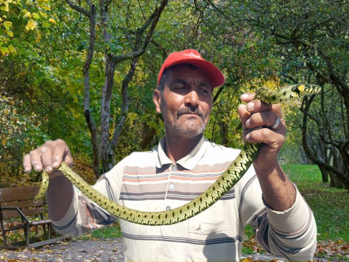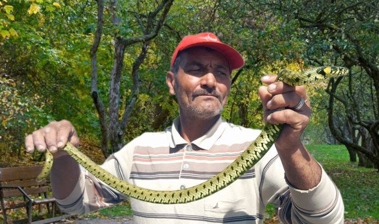 Kayseri'de havaların ısınmasıyla birlikte birçok bölgede uzunluğu 1 ile 3 metre arasında yılan görülmeye başladı. Dün de Sarıoğlan ilçesi Güzelyazı Mahallesi’nde Mustafa Sayit'e ait evin bahçesine yılan girdi. Paniğe kapılan Sayit, yılanı çıkarmak için ilçede 'yılan avcısı' olarak bilinen İsmail Kara'dan yardım istedi. Kara, bahçeye gelerek paniğe neden olan yılanı elleri ile yakalayarak, ilçe dışında doğaya bıraktı.