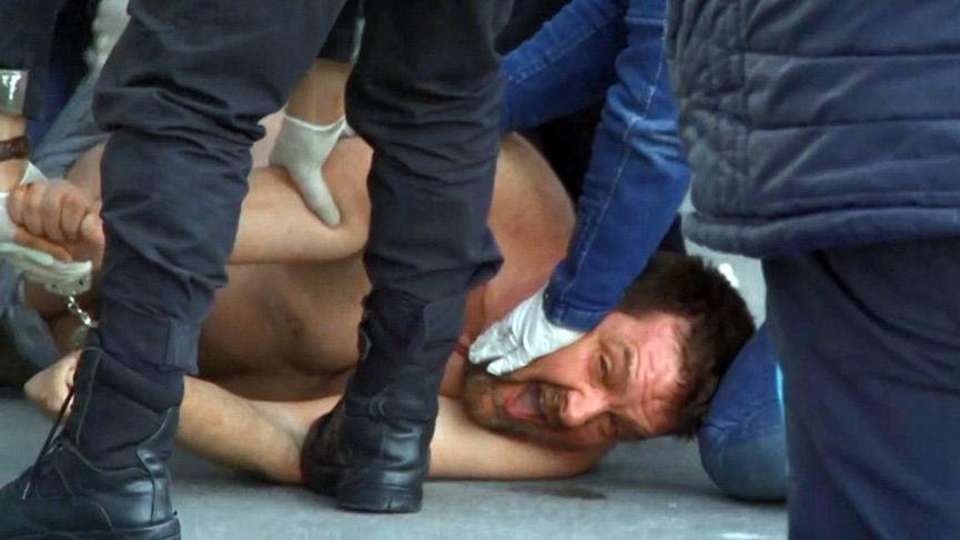 Polis ekipleri adamı güçlükle gözaltına aldı. Ambulansa bindirilen zanlı, polis nezaretinde hastaneye götürüldü. Polislerin müdahale sırasında eldiven takması dikkat çekti.