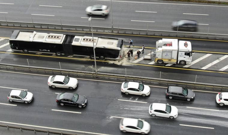 Şişli'de seyir halinde olan metrobüsün motor kısmında yangın çıktı. Yangın olay yerine gelen belediye ekipleri tarafından söndürüldü. Bir süre aksayan metrobüs seferleri normale döndü. Havadan çekilen görüntülerde metrobüsün motor kısmının yandığı ve trafiğin normal seyrine döndüğü görüldü.