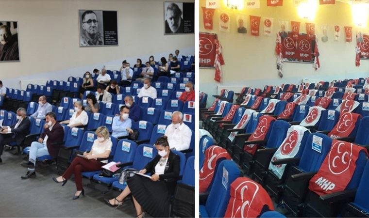 CHP'li İzmir Gaziemir Belediyesi’ne ait Atatürk Kültür Merkezi Nazım Hikmet Sahnesi’nde 20 Eylül Pazar Günü gerçekleşen MHP Gaziemir İlçe Kongresi’nde, Nâzım Hikmet, Uğur Mumcu, Aziz Nesin, Can Yücel, Müşvik Kenter gibi isimlerin fotoğrafları MHP bayraklarıyla kapatıldı.