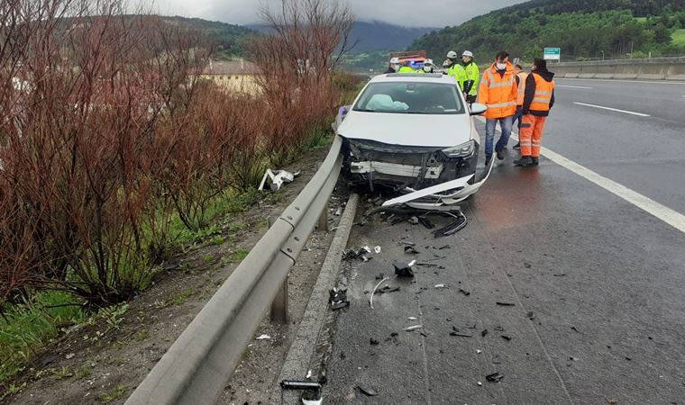 Ankara'dan İstanbul yönüne giden MHP İzmir Milletvekili Hasan Kalyoncu'nun kullandığı 06 CCC 035 plakalı otomobil, Çaydurt mevkisinde yağış nedeniyle kayganlaşan yolda kontrolden çıkarak bariyerlere çarptı.