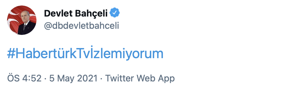 Öte yandan MHP lideri Devlet Bahçeli "Habertürk TV İzlemiyorum" paylaşımında bulundu.
