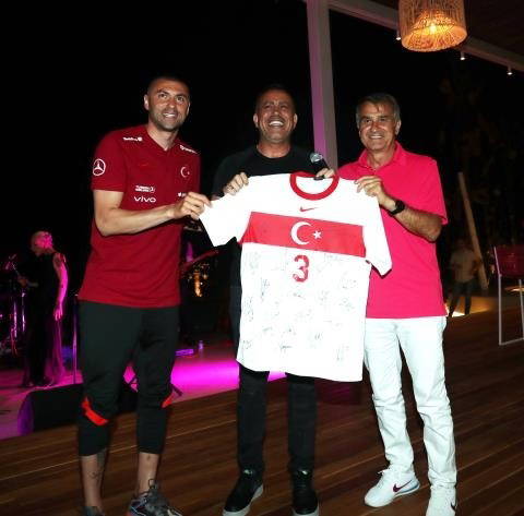 Türkiye Futbol Federasyonu Başkanı Nihat Özdemir ile A Milli Takımdan Sorumlu Yönetim Kurulu Üyesi Selim Soydan’ın da katıldığı yemek sonrasında A Milli Takım Teknik Direktörü Şenol Güneş ve kaptan Burak Yılmaz, Haluk Levent’e imzalı forma hediye ettiler.
