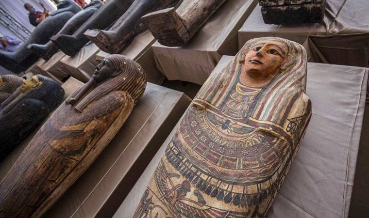 Bakanlıktan yapılan açıklamada açılmamış, süslemeli lahitlerin yanı sıra renkli ve altın yaldızlı ahşap heykellerin de bulunduğu bildirildi.
