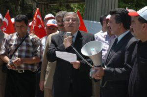 ''Buraya gelmeden önce Kurumun Genel Müdür Yardımcısı beni telefonla arayarak, 'Bu konuları görüşelim ve sorunları konuşalım' dedi. Biz de sorunların çözümü için zemin arayışında olduğumuzu söyledik. Keyfi uygulamanın kalkmasını talep ettik. Ama ne yazık ki buraya gelirken, yetkililerin bir yalan haberle buradaki eylemin iptal edildiğini sizlere duyurduğunu öğrendik. Yönetici yalan söylemez.''