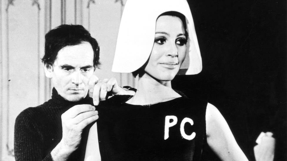 Cardin'in miğferi andıran şapka tasarımları 1960'ların moda dünyasında çığır açtı. (Getty Images)