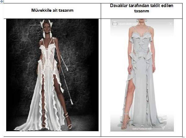 Avukat Hande Var, mahkemeden tasarım modelleri taklit eden giyim şirketlerine ait internet sitesinin yayınının durdurulmasını, internet sitesine olan erişimin engellenmesini, tasarım modellerinin tecavüz ve haksız rekabet eylemlerinin icrasında kullanılan her türlü tanıtıcı evrak, makine, araç, gereç ve vasıtalara el konulmasını, imhasını, imhası mümkün olmayanlardan tasarım elbiseye ilişkin fotoğrafların, resimlerin çıkartılmasını talep etti. Maddi zararının yapılacak yargılamayla tespit edilmesini mahkemeden isteyen Züleyha Kuru, şimdilik bin TL maddi, 100 bin TL de manevi tazminatı iki giyim firmasının ödemesini istedi.