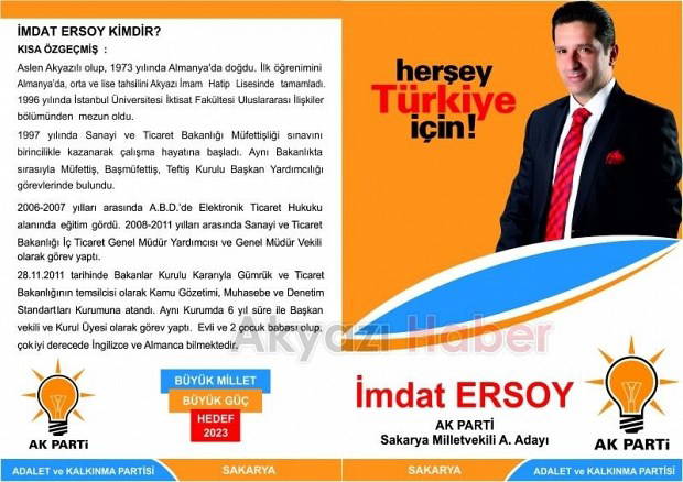 24 Haziran seçimlerinden AKP'den Sakarya milletvekili aday adayı olan İmdat Ersoy, ilköğrenimini Almanya’da, orta ve lise tahsilini Akyazı İmam Hatip Lisesi'nde tamamladı. İstanbul Üniversitesi İktisat Fakültesi Uluslararası İlişkiler Bölümü'nden mezun olan Ersoy, Sanayi ve Ticaret Bakanlığı Müfettişi olarak çalışma hayatına başladı.