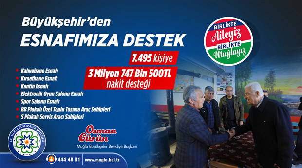 Maddi yardım sağlanacak esnafların belirlenmesi konusunda Muğla Esnaf ve Sanatkârlar Odaları Birliği’nden destek alınırken İl genelinde 7 bin 495 esnafa 3 milyon 747 bin 500 TL yardım yapılması planlanıyor.