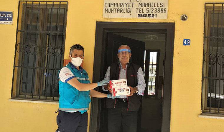 Bu kapsamda Muğla Büyükşehir Belediyesi tarafından il genelinde bulunan 569 muhtara maske dağıtıldı. Her bir muhtara 100’er adet maske dağıtımı gerçekleştiren Büyükşehir Belediyesi ekipleri toplamda 56 Bin 900 adet maskeyi muhtarlara ulaştırdı. Konuyla ilgili olarak Muğla Büyükşehir Belediyesi tarafından şu ifadelere yer verildi: “Muğla Büyükşehir Belediyesi olarak COVID-19 salgını ile ilgili mücadelemizi hızlı bir şekilde sürdürmeye devam ediyoruz. COVID-19 ile mücadelede en etkin yöntemlerden birisi olan dezenfekte çalışmalarımıza il genelinde devam ederken diğer yandan da vatandaşlarımızın en önemli ihtiyaçlarından birisi olan maske dağıtımına devam ediyoruz. Bu kapsamda da il genelinde bulunan 569 muhtarımıza 100’er adet olmak üzere toplam 56 Bin 900 adet maske dağıtıldı. COVID-19 salgını ile mücadelemiz tüm hızıyla devam edecek.”