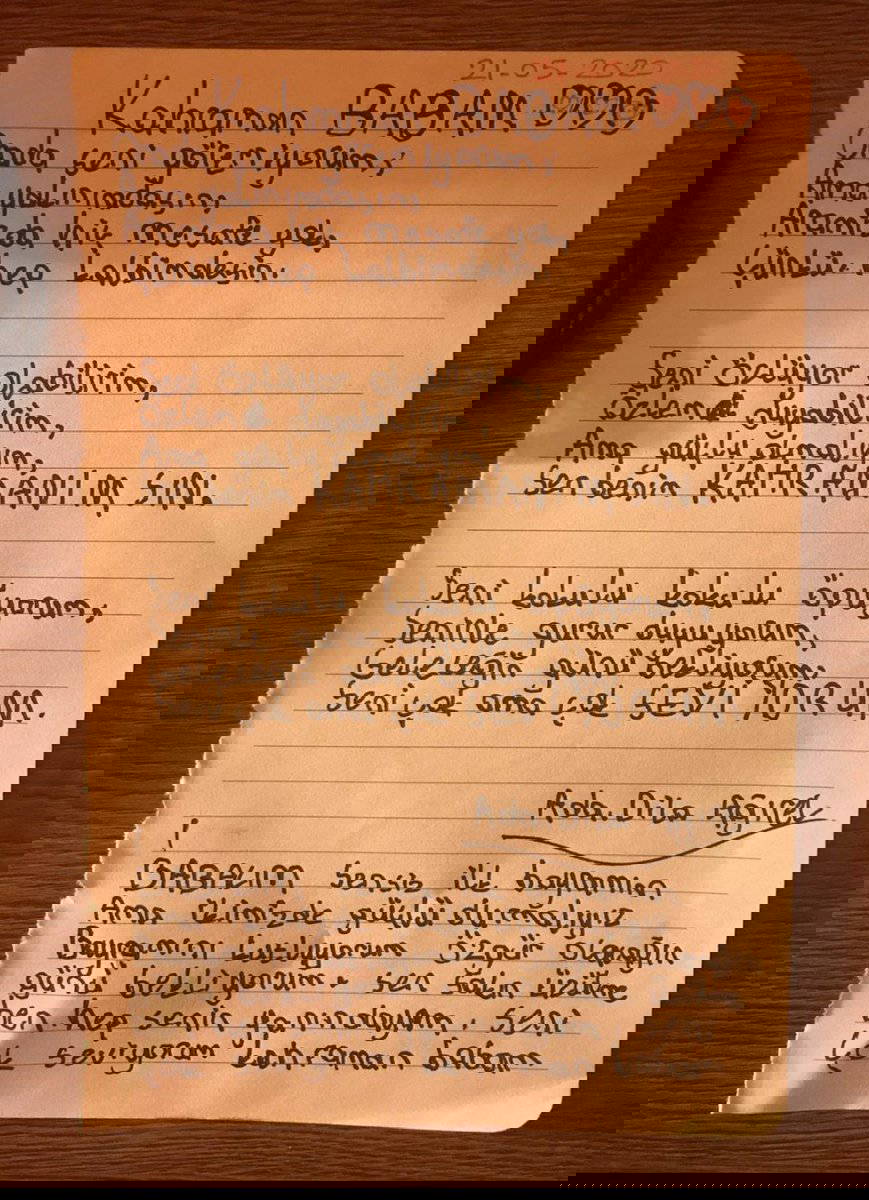 Ada, “Kahraman Babam” adını verdiği şiirinde babasını çok sevdiğini yazdı ve “Sen sakın üzülme ben senin hep yanındayım” dedi.