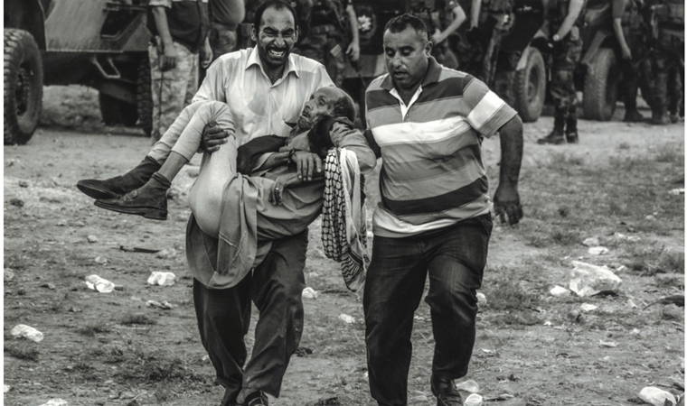 - 2019 yılı olmasına rağmen Suriye’deki iç savaşın izleri hala canlılığını korumakta ve masumların hayatlarına mal olmakta, insanlık onurunu ayaklar altına almaktadır. Fotoğraf, 13 Haziran 2015 tarihinde Uluslararası Koalisyon Güçleri ile IŞİD çetelerinin Şanlıurfa Akçakale sınır kapısının karşısında bulunan Telabyat’ta sıkışması sonucu; çevre kasaba ve köylerde bulunan insanların sınıra sığındıkları ve daha sonra günlerce sıcak havada aç, susuz bekleyen; çoğu kadın, çocuk ve yaşlıdan oluşan insanların “Umuda Göç”ünün başladığı sırada çekilmiştir.