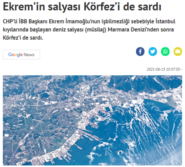 Yandaş Yeni Akit 'gazetesi', Marmara Denizi'ndeki müsilaj sorununu İstanbul Büyükşehir Belediyesi Başkanı Ekrem İmamoğlu'na bağlamış, "Ekrem'in salyası Körfez'i de sardı" başlığını atmıştı. Söz konusu haber sosyal medyada sert tepkilere neden olmuştu.
