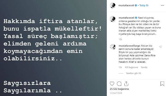 Daha sonra konu hakkında açıklama yapan Ceceli, "Nasıl oluyorsa, onlarca gazetecinin olduğu bir yerde; bu iftiraya dair ne bir video ne de bir fotoğraf var! Bu iddiayı yayan ve buna inanan akla ziyan mantaliteyi kötü niyetleriyle baş başa bırakıyorum.." diyerek yasal süreç başlatacağını duyurdu.