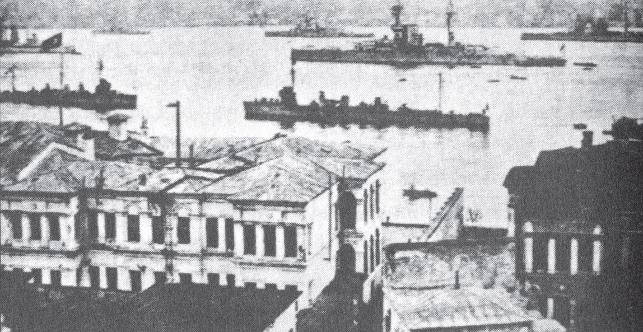 Savaş gemileri, Dolmabahçe Sarayı önlerinde toplarının ağızlarını saraya çevirip, yarım ay biçiminde konum alarak demir atmışlardı.