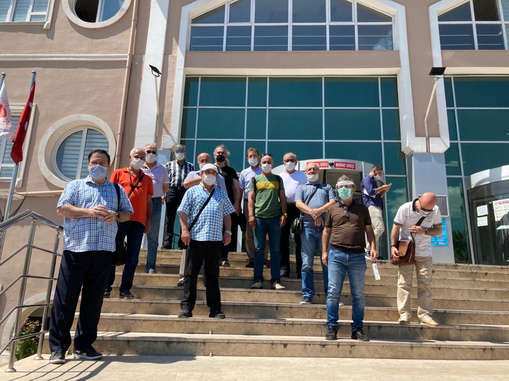 Yıldız'ın eşi, avukatları ve desteğe gelen emekli askerler Adliye önünde fotoğraf çektirdi
