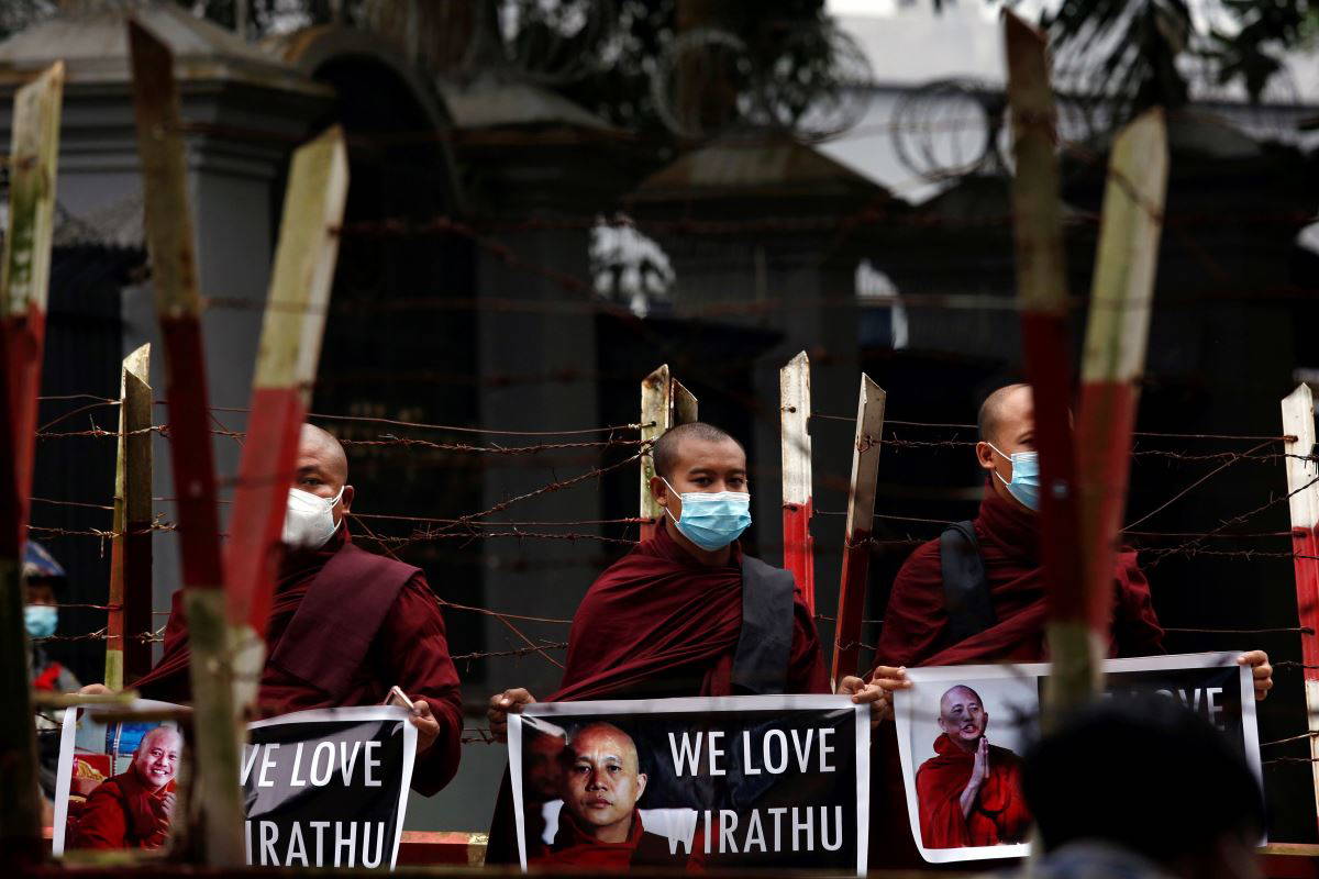 2019’un mayıs ayında halkı isyana teşvik suçlamasıyla tutuklama kararı çıkarılan Budist terörist Wirathu, 18 ay polisten kaçtıktan sonra 2 Kasım'da teslim oldu. 3 Kasım'da mahkeme binası önünde düzenlenen eylemde Budistler Ashin Wirathu'nun fotoğrafını taşıdı.