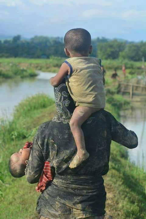 Myanmar’dan 2017 eylülünde Bangladeş’e kaçmak zorunda kalan bir anne ve 2 çocuğu objektiflere böyle yansıdı.