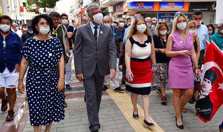 Narlıdere’nin en işlek merkezlerinden biri olan ve belediye öz kaynaklarıyla baştan sona yenilenen Barış Sokak, ilçenin ilk ‘sevgi yolu’ olarak vatandaşların kullanımına açıldı. Altyapısından parke taşlarına, kanalizasyondan aydınlatma sistemine kadar modernize edilen sokakta, üretici kooperatiflerin satış stantlarına da yer verildi. Yapılan düzenlemeler vatandaşların da yüzünü güldürürken, Barış Sokak Esnafı, Başkan Ali Engin’e teşekkür için çiçek verdi. Düzenlenen törene Narlıdere Belediye Başkanı Ali Engin, eşi İlke Engin, İzmir Köy Koop Birlik Başkanı ve Slow Food Teos Kurucu Başkanı Neptün Soyer, CHP İlçe Başkanı Mesut Durgun muhtarlar, meclis üyeleri ve sivil toplum kuruluşlarının temsilcileri katıldı. Büyükşehir Belediye Bandosu eşliğinde sokağı gezen katılımcılar, üretici kooperatiflerin stantlarından alışveriş de yaptı.